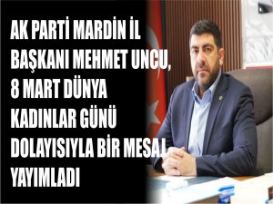 AK Parti Mardin İl Başkanı Mehmet Uncu, 8 Mart Dünya Kadınlar Günü dolayısıyla bir mesaj yayımladı.