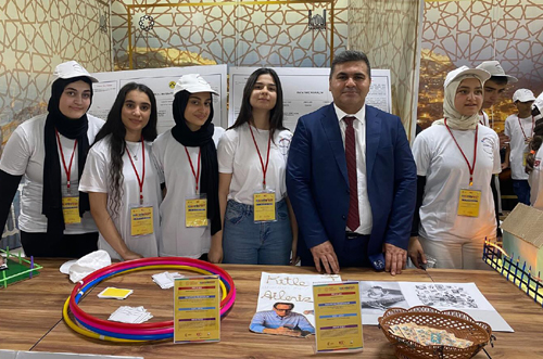 İl Milli Eğitim Müdürü Ali Eyyüpkoca ve Midyat İlçe Milli Eğitim Müdürü Abdurrahim Demir, standı ziyaret edeek, öğrencilerden projeleri ile ilgili bilgi aldı.